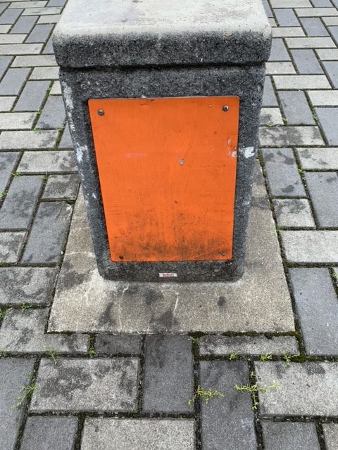 5月4日(祝日)午後4時20分頃、2号棟北側でベルクのパートの女性が配達中、運転を誤り、車止め(3個の内1個)にぶつけてしまいましたとのこと。