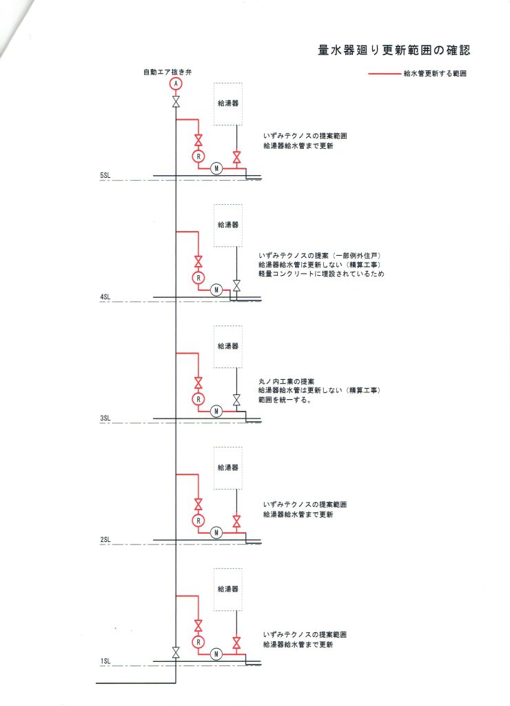 トイレについては、耐用年数が長いので、雑排水管工事は実施しない予定。