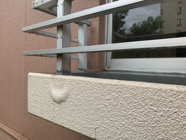 1号棟1階東側花台の塗膜膨張の対応について、理事会より相談があった。写真と発生箇所を第二回大規模修繕を実施の株式会社太陽に相談した。