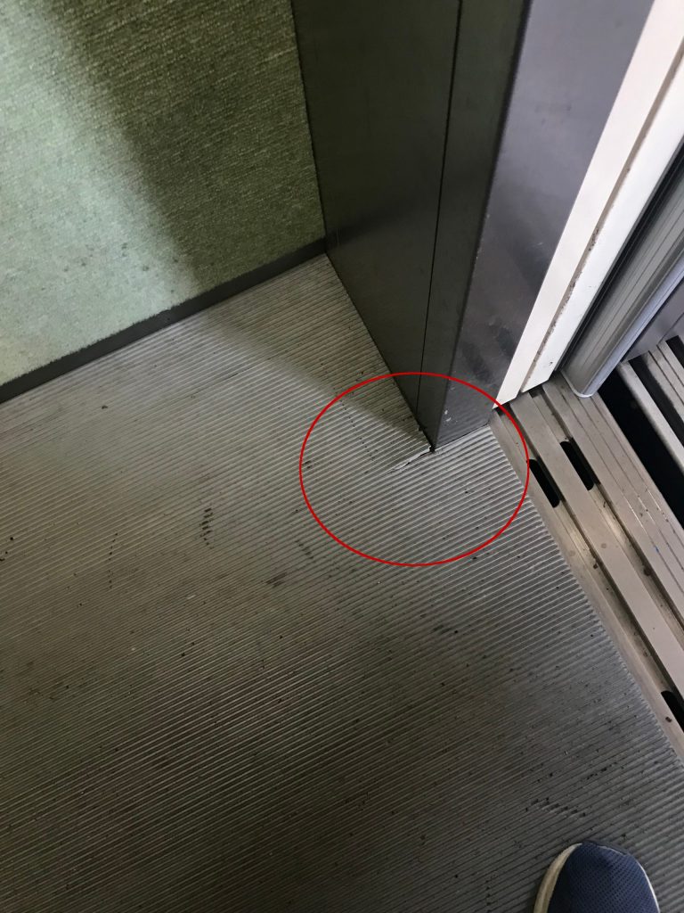 リバーサイド壱番街の全数のうち3台以外はすべてマットに亀裂があるとのことです。高齢の方がつまずく危険性もありますので、交換を検討します。