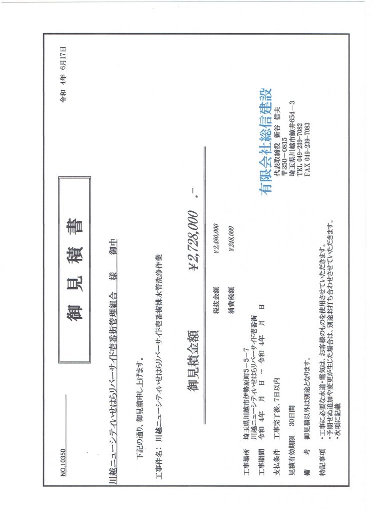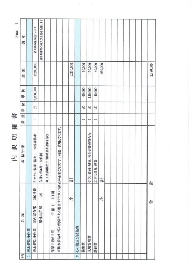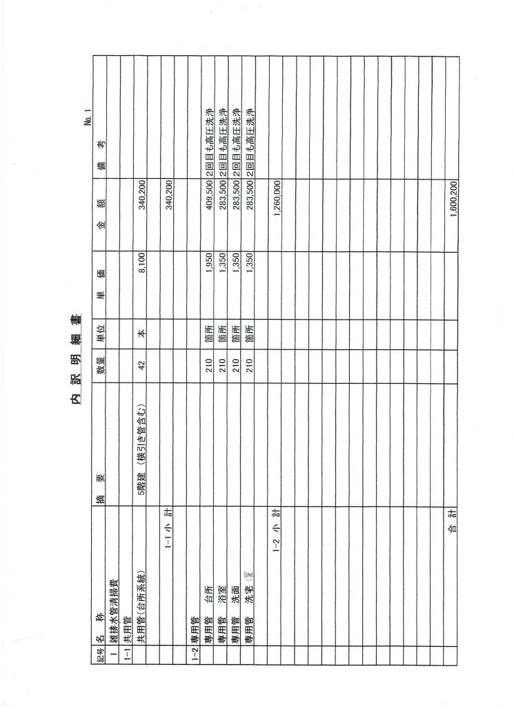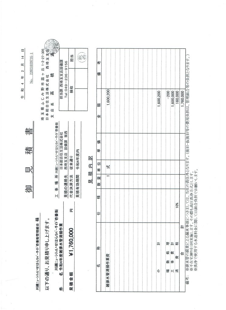 2022年度の雑排水管の見積もりが1,760,000円(前年比148% 2020年比 250%)になっているので、業者の再選定を行います。