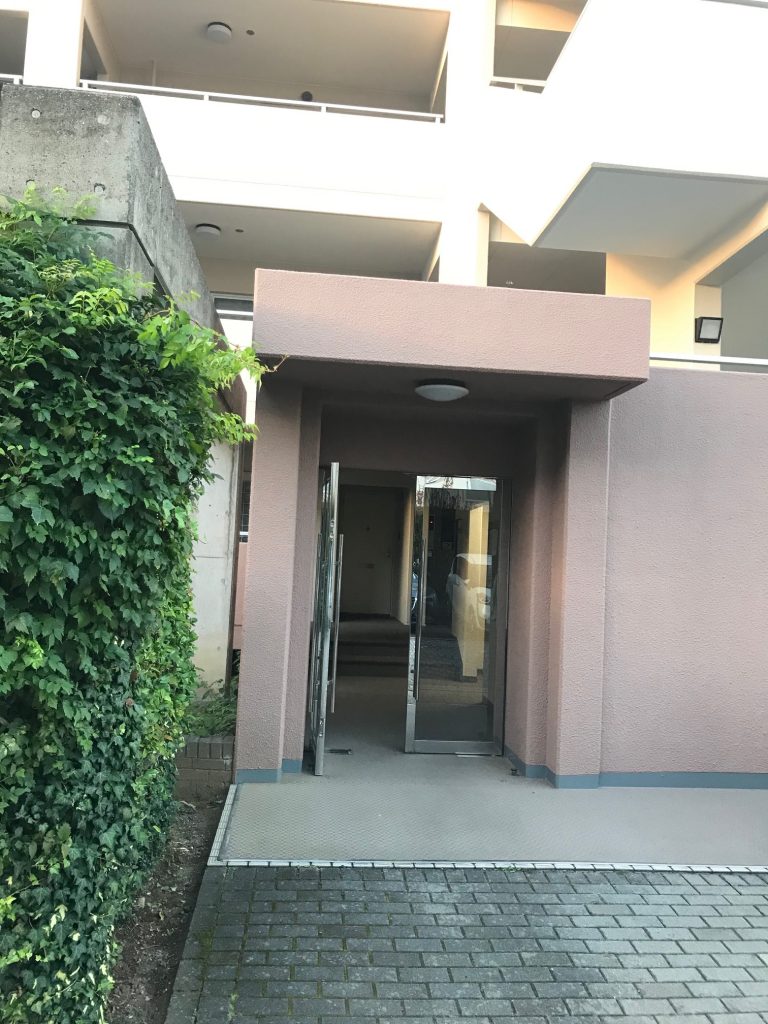 2号棟のEEスイッチは、1号棟に比べて、同時刻でもくらいが、エントランス照明は消えている。