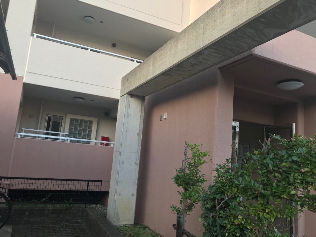 7号棟はEEスイッチは2号棟と同じ程度の暗さだが、外廊下の照明は点灯している。ただし、エントランス照明は消灯している。2号棟のエントランス照明のように接地抵抗が低いなどの障害か?